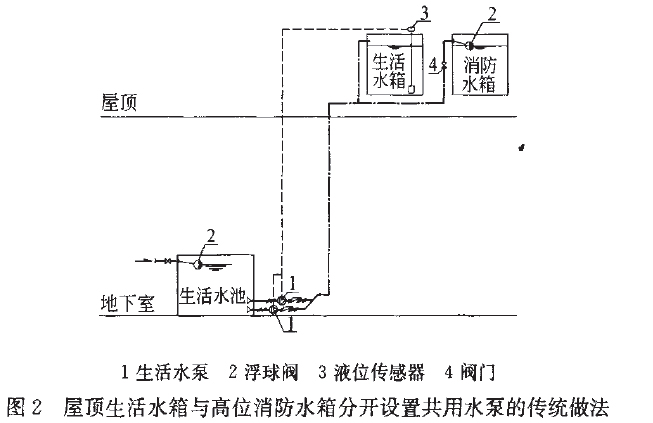 屋顶生活水箱与高位消防水箱分开设置共用水泵的传统做法