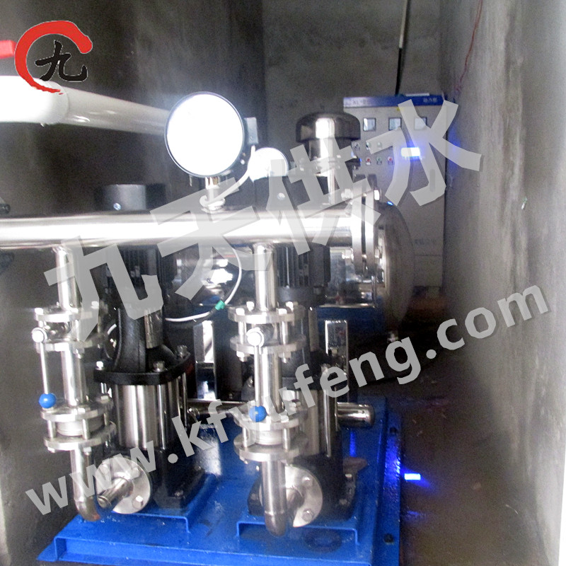 当自来水水压不足时,系统压力信号通过精密的传感器反馈给控制系统,水泵启动,进入变频状态,并根据用水量的大小和压力的高低自动调节水泵的转速和投入运行水泵台数,即一台水泵首先进入低速变频状态,以补压差,如不能满足则提高转速,直到工频运行,如还不能满足则另外一台进入变频状态,直到进入工频,达到设备最大运行能力。